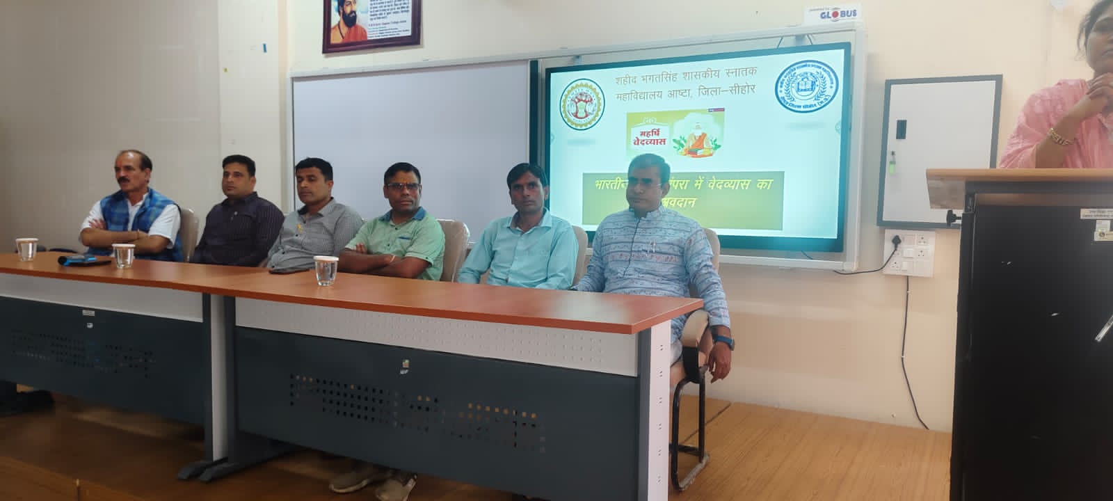 आज शहीद भगत सिंह शासकीय महाविद्यालय, आष्टा में ’’भारतीय ज्ञान परंपरा में वेद व्यास का अवदान’’ शीर्षक आघृत गोष्ठी का आयोजन किया गया ।