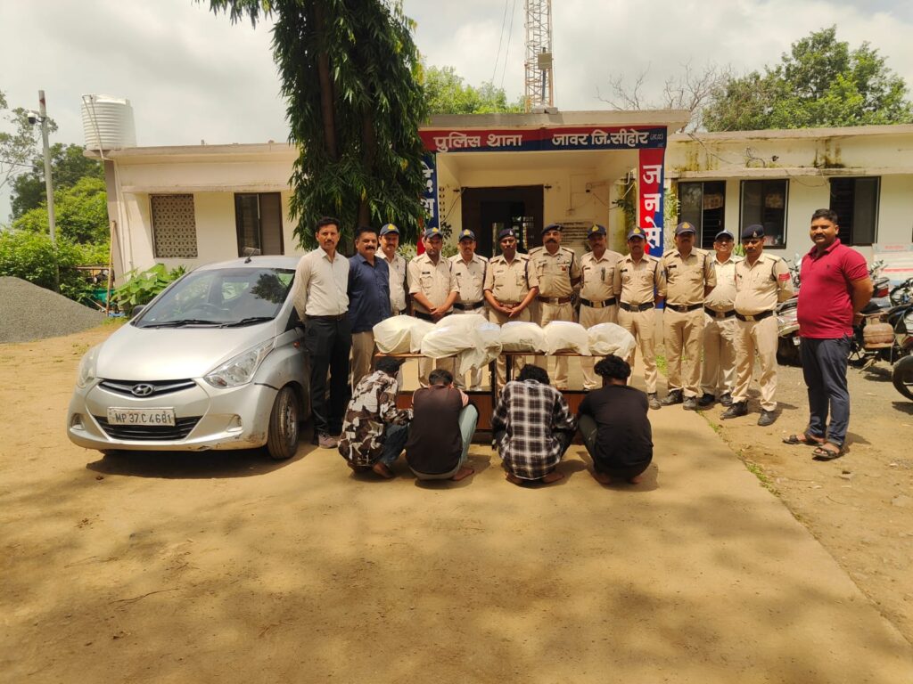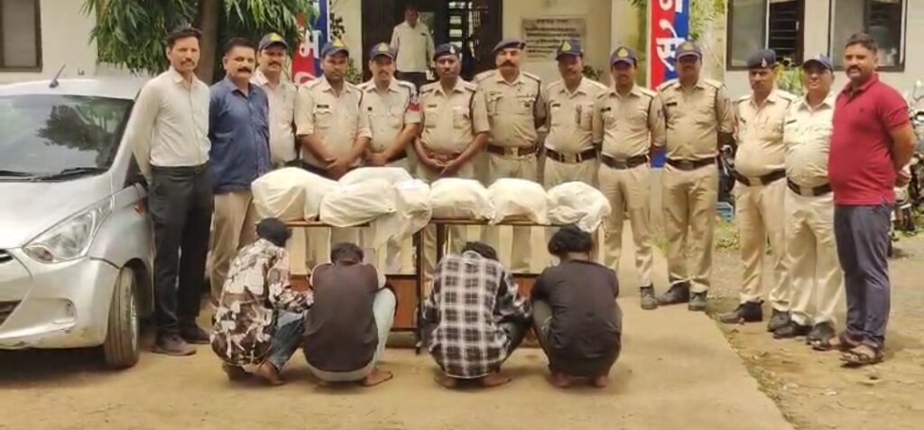 पुलिस को उक्त बेग में 15 किलो 996 ग्राम गांजा कीमती 6 लाख 52 हजार रुपये का एवं एक हुंडई कार इओन एमपी 37 सी 4681 पुलिस ने जब्त की है ।पुलिस ने इस मामले में चारों को गिरफ्तार किया है। इन्हें जिला मुख्यालय के विशेष न्यायालय में पेश कर पुलिस रिमांड लिया जाएगा। देर रात तक प्रकरण दर्ज किया गया।