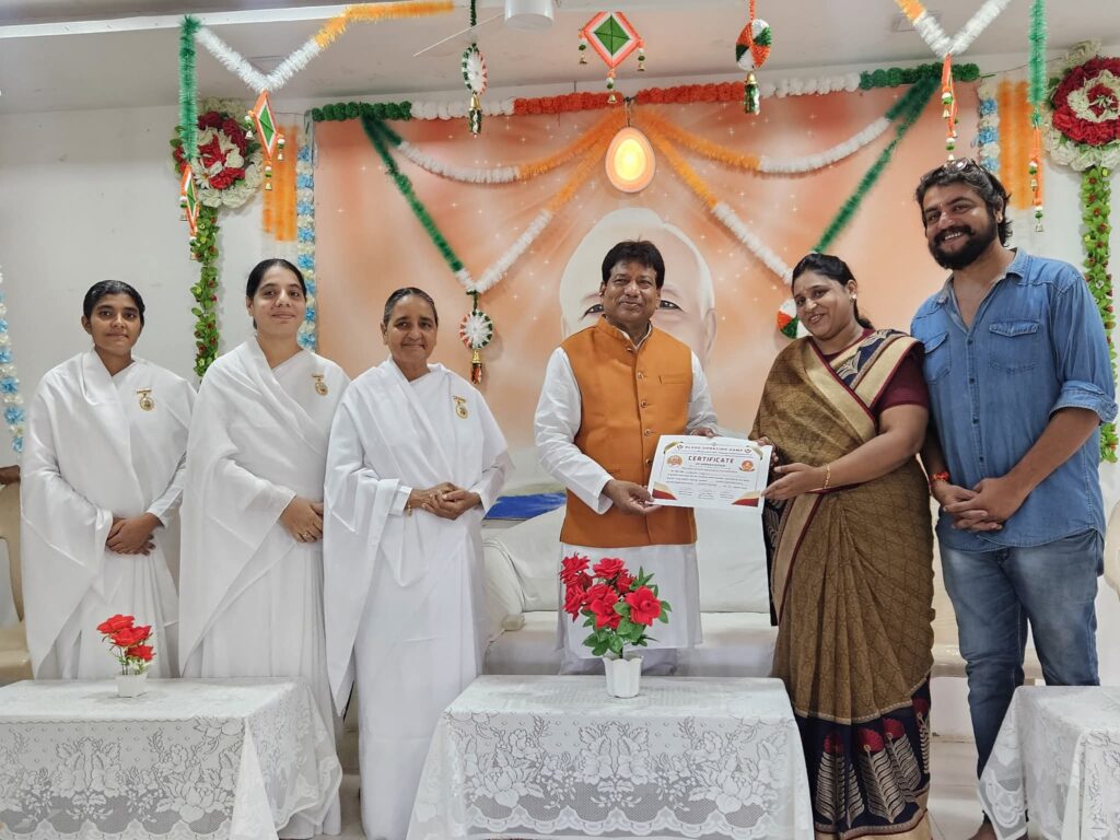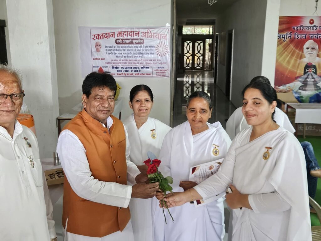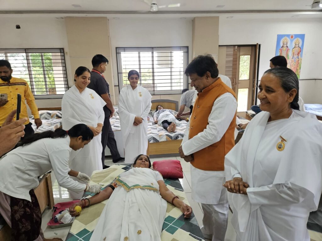 शांति सरोवर में लगाये गये रक्तदान शिविर में पहुचे विधायक गोपालसिंह इंजीनियर का शांति सरोवर की प्रमुख दीदी कुसुम दीदी सहित सभी दीदीयों एवं संस्था के स्वयंसेवको ने विधायक का स्वागत सम्मान किया ।