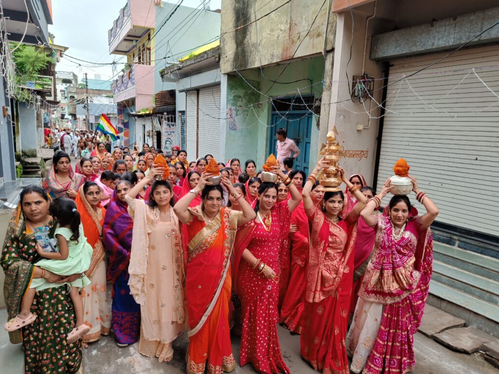 “पंचमेरु के समापन पर गंज मंदिर की जलयात्रा मुनिसंघ के सानिध्य में निकाली