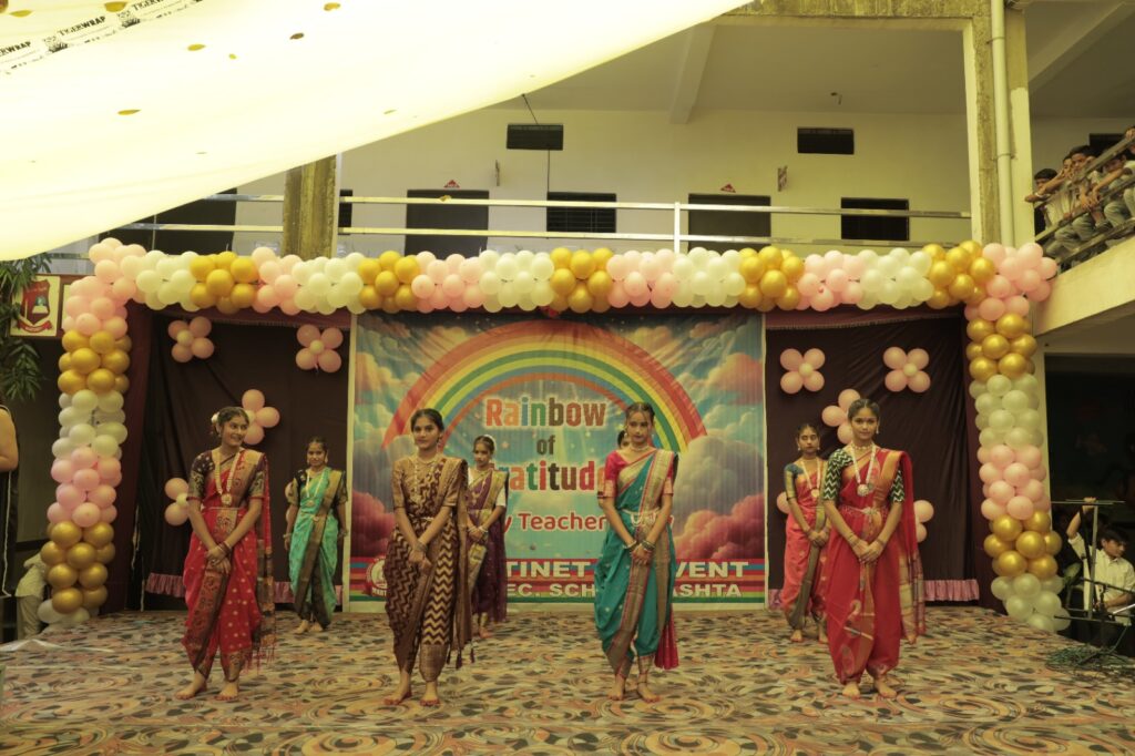 इसके पश्चात छात्राओं द्वारा स्वागत नृत्य प्रस्तुत किया गया। और शिक्षक/शिक्षिकाओं का सम्मान समारोह आरंभ हुआ । प्रत्येक शिक्षक/शिक्षिका को सम्मान के साथ मंच पर आमंत्रित करके पुष्प माला के साथ तिलक लगाकर और एक आकर्षक उपहार द्वारा उनका सम्मान किया गया साथ ही मंच पर सभी को अपने विचार व्यक्त करने का अवसर भी प्रदान किया गया ।
