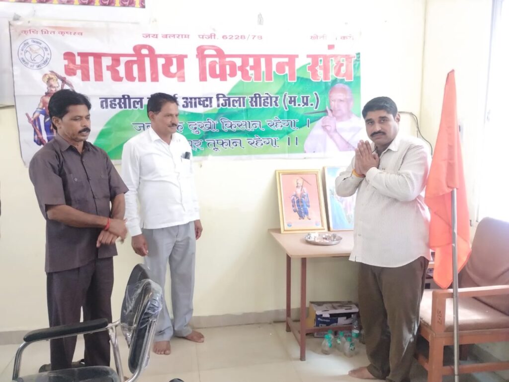 भारतीय किसान संघ तहसील आष्टा की मासिक बैठक आज कृषि उपज मंडी के बैठक कक्ष में आयोजित की गई । बैठक का शुभारम्भ तहसील अध्यक्ष द्वारा ध्वज लगाकर एवं अतिथियों द्वारा द्वीप प्रज्वलन कर किया गया । तहसील मंत्री द्वारा अतिथियों का परिचय कराया गया । बैठक में प्रांत से तहसील प्रवास पर आये प्रांत महामंत्री रघुनंदन रघुवंशी का मार्गदर्शन मिला । जिला अध्यक्ष ने संगठन के बारे में एवं आगामी कार्यक्रमों की तैयारी के बारे में जानकारी दी जिसमें बलराम जयंती उत्सव, किसान दिवस एवं 15 तारीख का जिला केंद्र पर ज्ञापन आदि बिंदु मुख्य रहे । सभी कार्यकर्ताओं ने भगवान बलराम की आरती कर प्रसाद वितरण किया ।