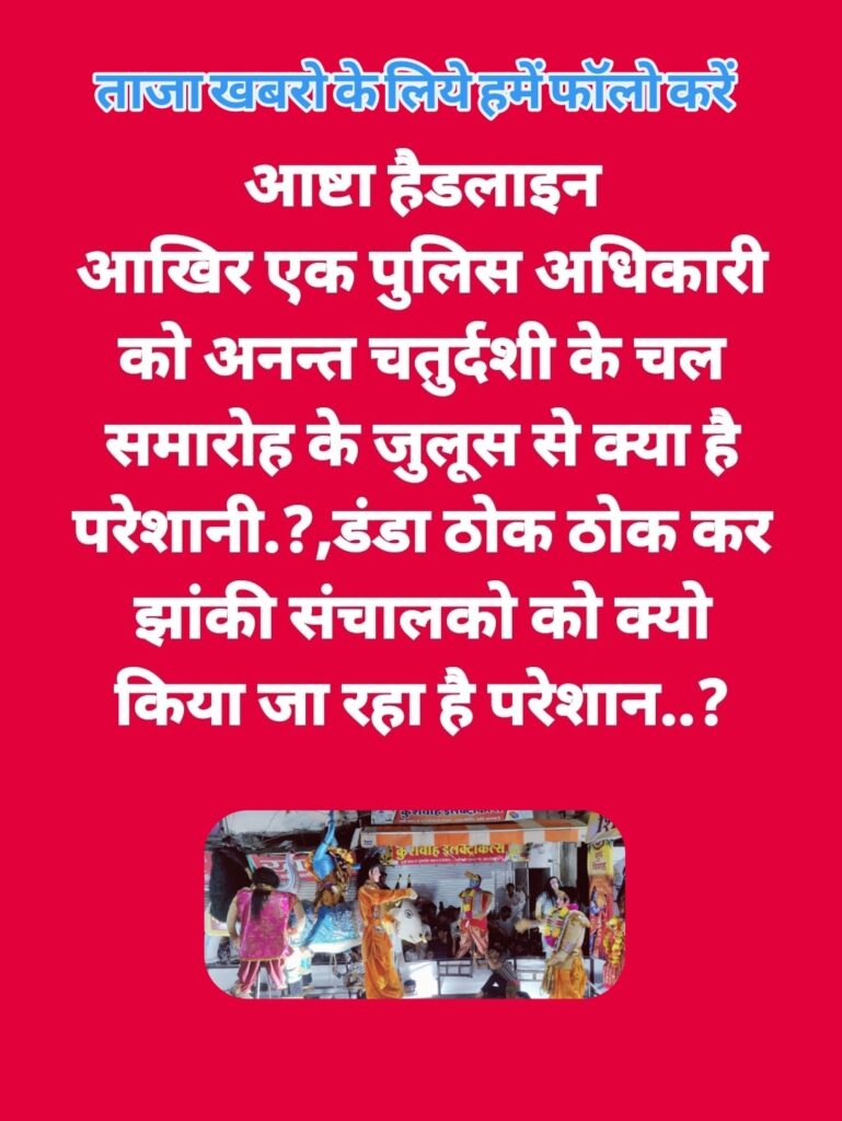 प्रदेश में ख्याति प्राप्त नगर की गणेश विसर्जन पर परंपरागत झांकियों की एक झलक पाने के लिए शनिवार की रात हजारों लोगों ने रतजगा कर झांकियों की प्रस्तुति को निहारा। झांकियों को लेकर अपनी विशिष्ट पहचान बना चुके आष्टा नगर में परंपरानुसार करीब एक दर्जन समितियों ने झांकियों का निर्माण कर सुसज्जित झांकियों का प्रदर्शन चल समारोह के दौरान किया।