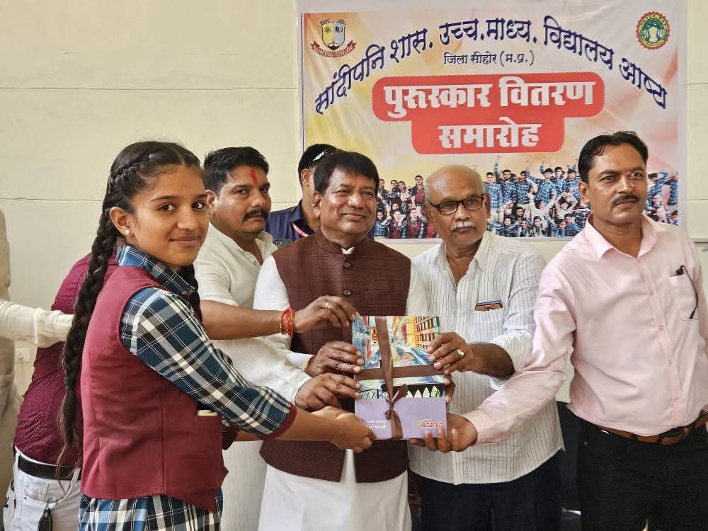 आष्टा। सांदीपनी (सी.एम. राइज) शासकीय उत्कृष्ट उमावि आष्टा में त्रैमासिक परीक्षा 2025 में समस्त कक्षाओं के पचहत्तर सेक्शन में प्रथम, द्वितीय और तृतीय स्थान प्राप्त करने वाले दो सौ पच्चीस से अधिक विद्यार्थियों को विधायक गोपाल सिंह इंजीनियर के कर कमलों से पुरूस्कृत किया गया। प्रथम स्थान प्राप्त करने वाले विद्यार्थी को स्ट्डी टेबल, द्वितीय स्थान प्राप्त करने वाले विद्यार्थी को सी.एम. राइज़ बेग और तृतीय स्थान प्राप्त करने वाले विद्यार्थी को व्हाइट बोर्ड प्रदान किए गए।