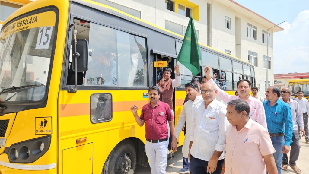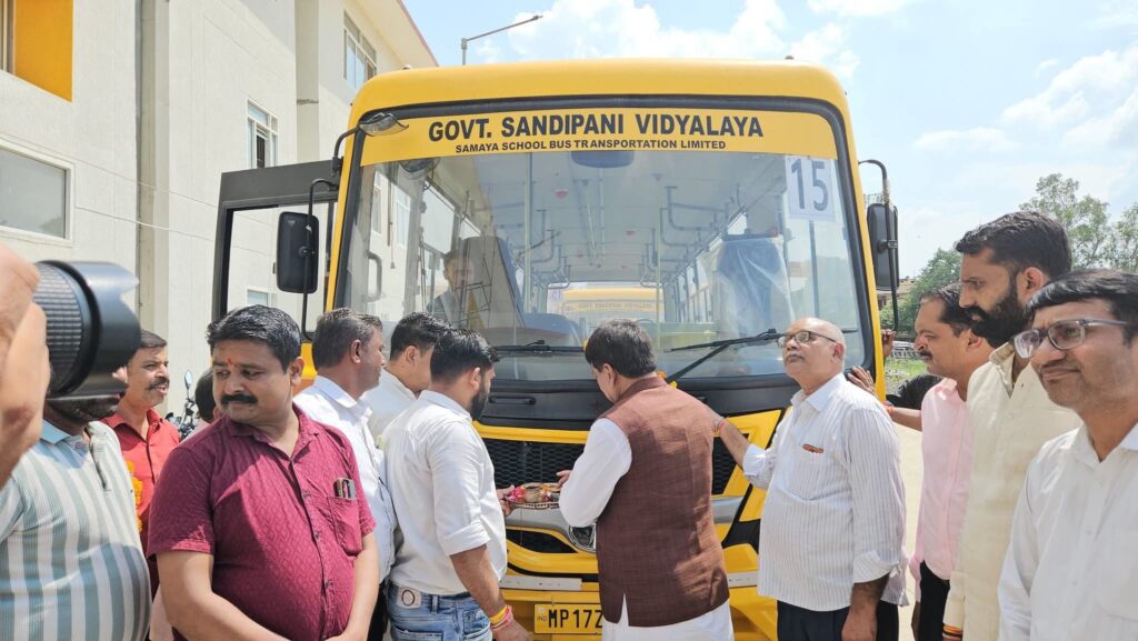 सांदीपनी विद्यालय में बच्चों के मान से प्रथम चरण में मिली बस कम होने की जानकारी मिलने पर विधायक गोपालसिंह इंजीनियर द्वारा किये गये प्रयासों के परिणाम स्वरूप विद्यालय को 5 ओर बसे प्राप्त हुई आज विधायक ने पूजन कर उन 5 बसों को हरी झंडी दिखा कर रवाना किया ।