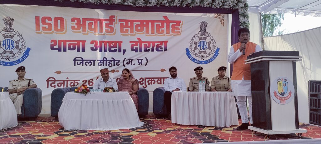 यह प्रमाणन पुलिस थानों द्वारा उच्च स्तरीय कार्यप्रणाली, पारदर्शिता तथा नागरिकों को गुणवत्तापूर्ण सेवाएं प्रदान करने के मानकों को पूरा करने पर दिया जाता है। कार्यक्रम की अध्यक्षता पुलिस अधीक्षक सीहोर दीपक कुमार शुक्ला ने की।
