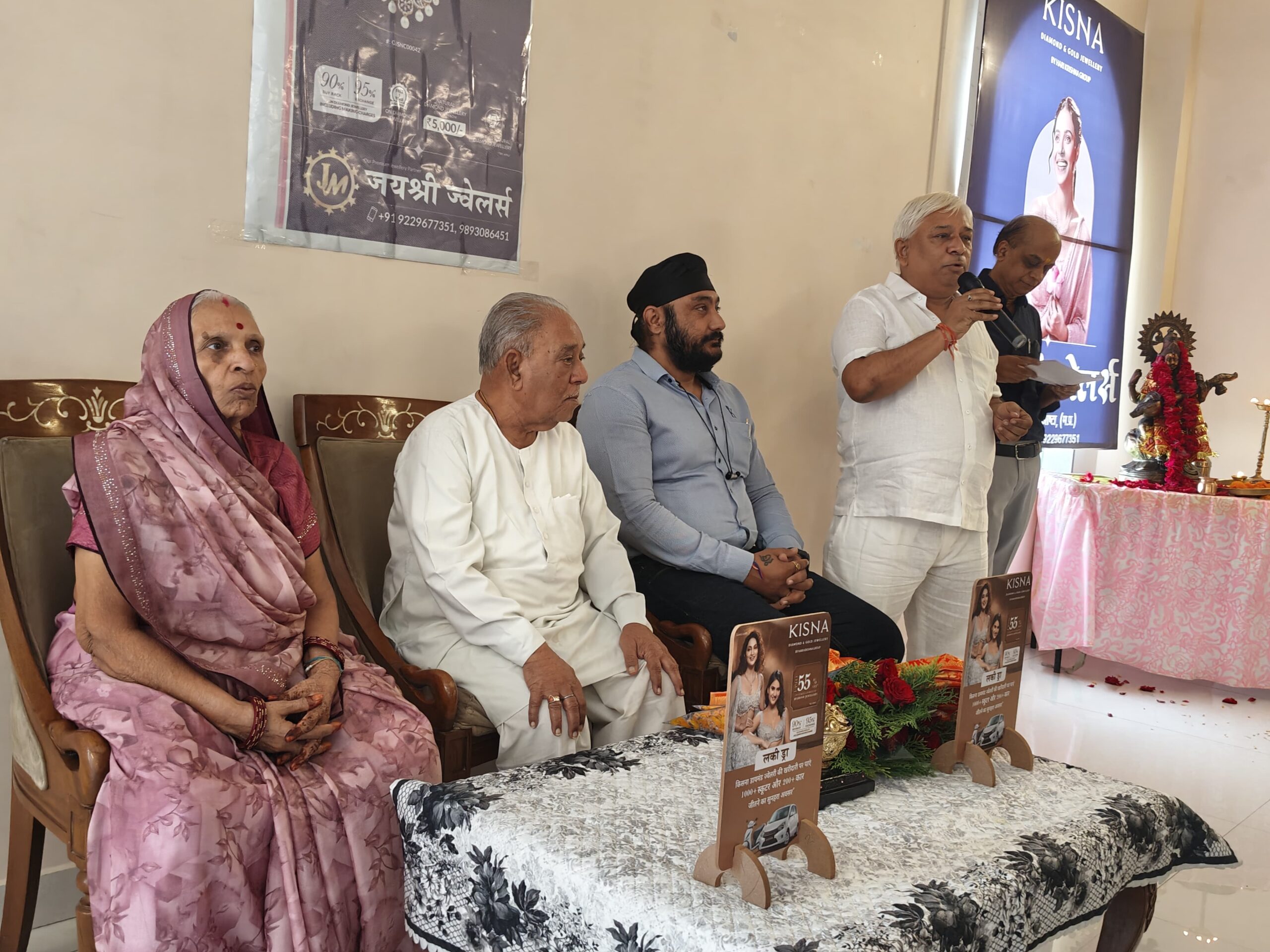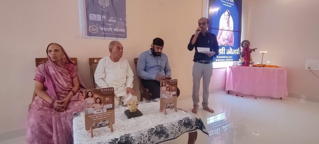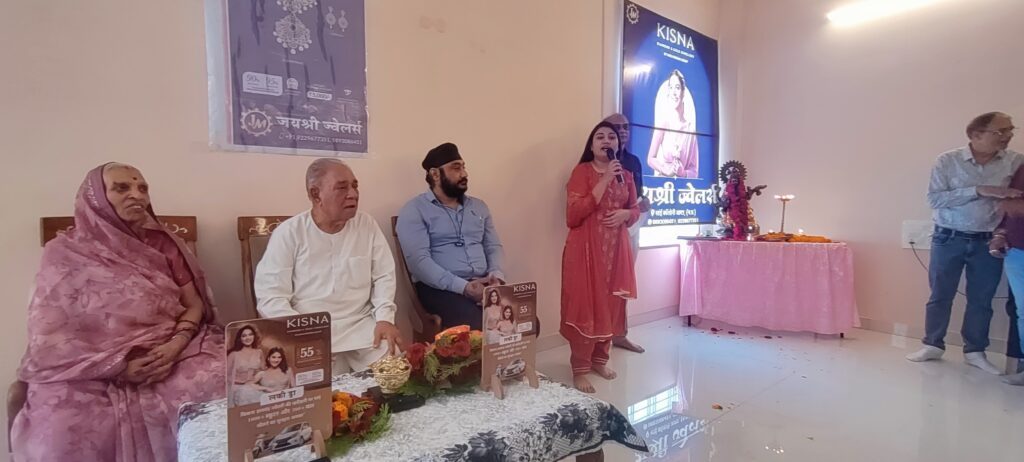 प्रातः जयश्री ज्वेलर्स पर किसना ब्रांड ज्वेलरी के आउटलेट का भव्य शुभारम्भ संस्था के संस्थापक ,आशीर्वदाता श्री अवधनारायण सोनी,माताश्री श्रीमती कृष्णा सोनी एवं हरिकृष्णा ग्रुप मुंबई के कवलदीप सिंह ने माँ सरस्वती जी की प्रतिमा के समक्ष दीप प्रज्जवलित कर किया।