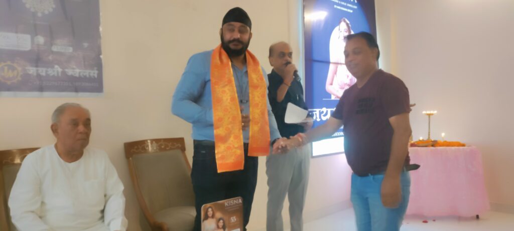 इस अवसर पर आगंतुक अतिथियों,सभी पत्रकारों का जयश्री ज्वेलर्स के जितेन्द्र सोनी दादा दयालु,महेश सोनी,सुभांश सोनी, श्रीमती सुनीता सोनी, श्रीमती आशा सोनी,कुमारी अक्षिता सोनी एडवोकेट एवं ओजल सोनी सोनी ने स्वागत एवं स्मृति चिन्ह भेंट कर सम्मान किया ।