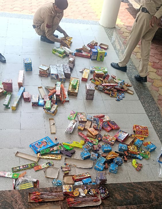 निरीक्षण के दौरान भोपाल नाका स्थित दो किराना व्यापारियों द्वारा बिना लाइसेंस अपनी दुकानों में फटाके बेचते हुए पाए जाने पर विस्फोटक अधिनियम के उल्लंघन पर प्रभावी कार्रवाई की गई