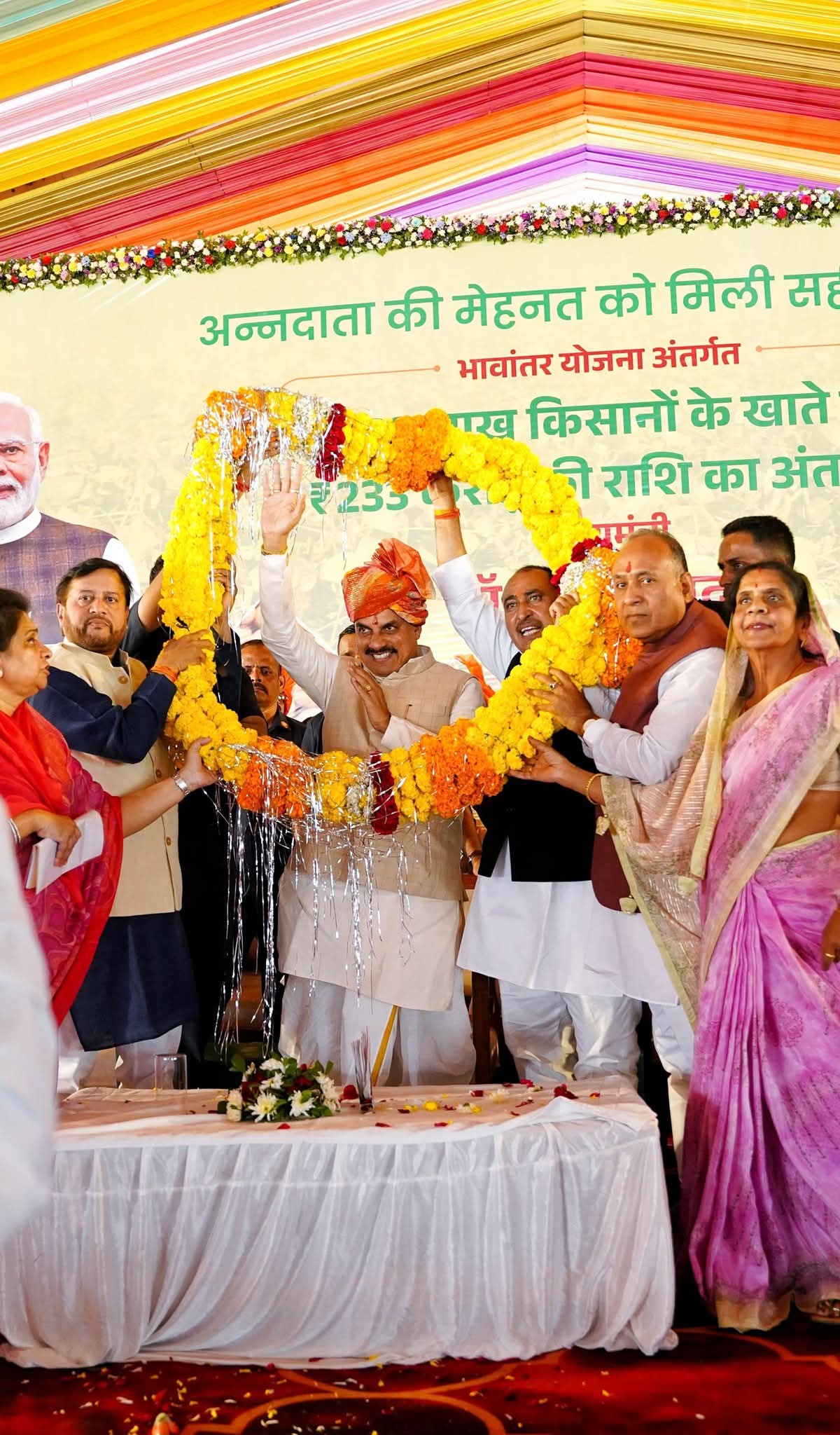 भावांतर योजना लागू होने से फसल बेचने में किसानों को होने वाली कई परेशानियां दूर हो गई हैं। उन्होंने कहा कि प्रदेश में एक दिसंबर को गीता जयंती भी पूरी भव्यता के साथ मनाई जाएगी। प्रदेश के नगरों में गीता भवन बनाए जा रहे हैं। साथ ही प्रत्येक विकासखंड में वृंदावन ग्राम बनाए जाएंगे। मुख्यमंत्री डॉ. यादव ने कहा कि हमारे लिए धरती पुत्र किसान और सीमा पर जवान, दोनों समान सम्मान का भाव रखते हैं। धरती पुत्र किसानों से देश की विशेष पहचान बनी है।