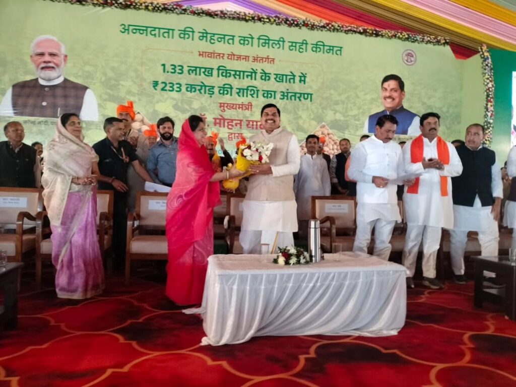 भोपाल । मुख्यमंत्री डॉ. मोहन यादव ने कहा है कि भावांतर भुगतान, अन्नदाता के उत्थान का पर्याय है। अन्नदाता को दी गई एमएसपी की गारंटी की पूर्ति करते हुए सोयाबीन भावांतर योजना में 1 लाख 33 हजार किसानों के खाते में 233 करोड रुपए की राशि अंतरित की गई है। यह इस बात का प्रमाण है कि हमने जो कहा उसे कर दिखाया। उन्होंने कहा कि प्रधानमंत्री श्री नरेन्द्र मोदी के मार्गदर्शन में प्रदेश में अनेक किसान हितैषी योजनाएं संचालित की जा रही है।