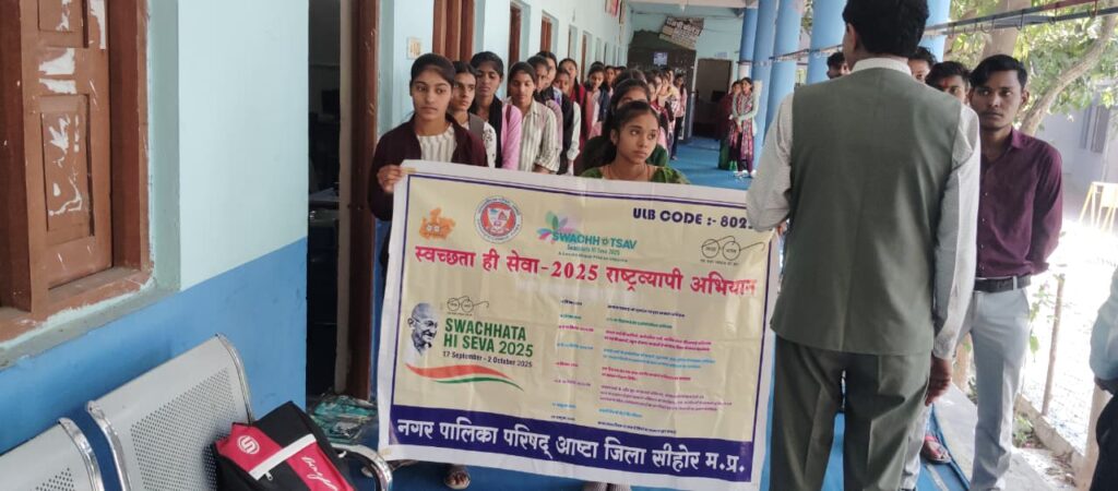 आष्टा । नगर पालिका अध्यक्ष हेमकुंवर रायसिंह मेवाड़ा एवं मुख्य नगर पालिका अधिकारी विनोद कुमार प्रजापति की निगरानी में नगर पालिका की सहयोगी संस्था यूनिट वेस्ट मैनेजमेंट कंसलटेंट प्राइवेट लिमिटेड उज्जैन के द्वारा राजश्री एजुकेशन सोसाइटी फॉर प्रोफेशन स्टडीज आष्टा में स्वच्छ भारत अभियान अंतर्गत स्वच्छता संवाद एवं सामूहिक श्रमदान कार्यक्रम आयोजित किया गया।