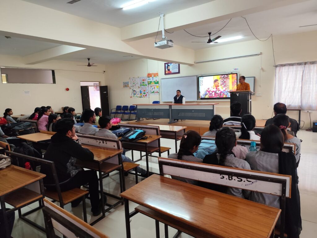 प्रभारी प्राचार्य धर्मेंद्र सूर्यवंशी ने अपने उद्बोधन में छात्राओं को कर्मयोग के महत्व पर प्रकाश डाला। उन्होंने कहा कि भगवद्गीता में श्रीकृष्ण ने कुरुक्षेत्र के युद्धक्षेत्र में अर्जुन को जो अमर उपदेश दिए, वे आज भी विपरीत परिस्थितियों में मनुष्य को संबल प्रदान करते हैं। निष्काम कर्म, धैर्य, संयम और आत्मसंयम ही जीवन का सच्चा सार है। कार्यक्रम संयोजक डॉ. दीपेश पाठक ने कहा की विश्व का एक इकलौता ग्रंथ है श्रीमद भगवत गीता, जिसकी जयंती मनाई जाती है। यही कारण है कि गीता ग्रंथ का जन्म भगवान श्रीकृष्ण के मुख से हुआ है।
