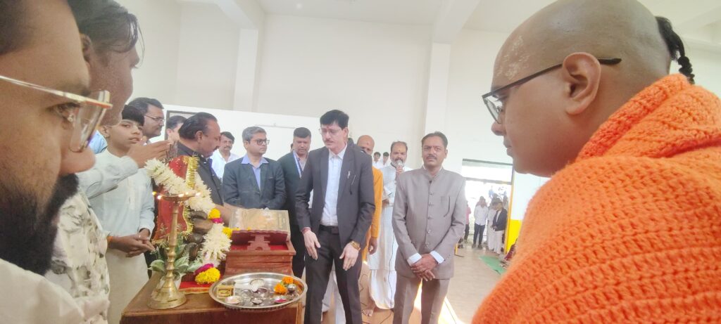 अतिथिगणों का आयोजक मंडल द्वारा पुष्पमाला और तिलक लगाकर स्वागत अभिनंदन किया गया तथा एक बार फिर स्वागत गीत की स्वर लहरियो के माध्यम से सांदीपनि विद्यालय के विद्यार्थियों नें नई ऊर्जा का संचार किया। इस्कॉन सेन्टर के नन्हें बालक वंश पाठक नें गीता के 15 वे अध्याय के श्लोको का पाठ किया और उनका सार सभी को हिन्दी में भी समझाया।
