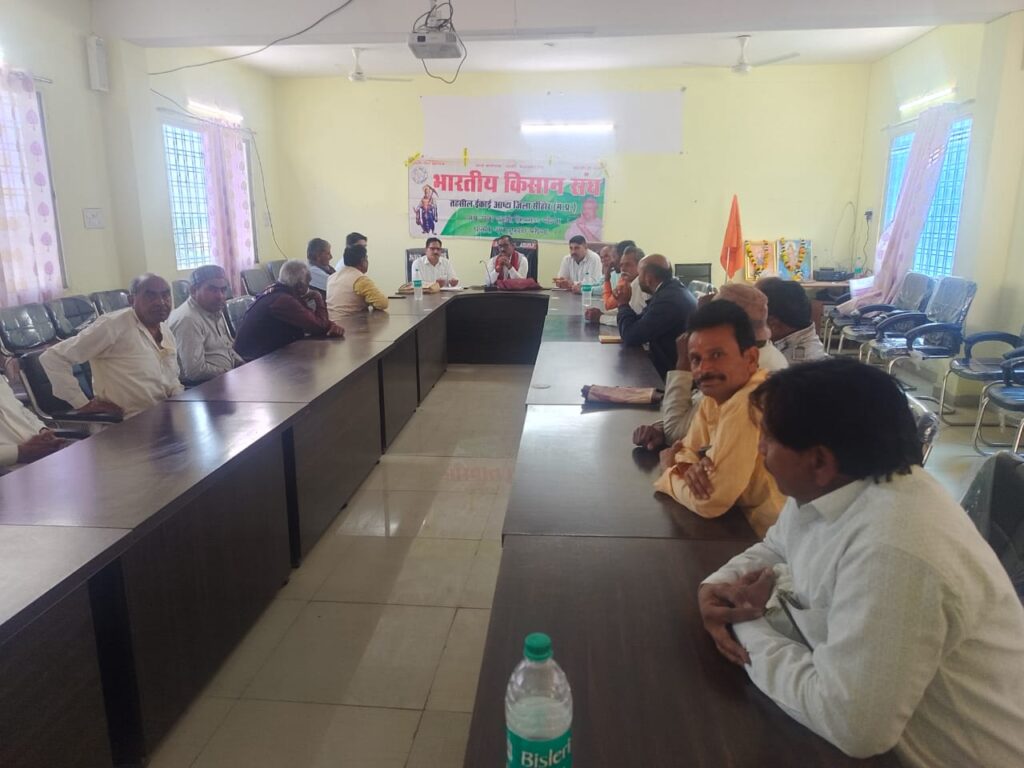 परिचय एवं गीत के साथ बैठक में विभिन्न रचनात्मक एवं संघात्मक कार्यक्रमों और किसानो की विभिन्न समस्याओं पर पर विस्तार से चर्चा की गई । बैठक में वर्तमान में बिजली की आपूर्ति में किसानों को आ रही दिक्कत एवं खाद की कमी की आ रही परेशानियों को दूर करने का मुद्दा बैठक में छाया रहा । वही मुख्य रूप से पुरानी मंडी को नई मंडी में ले जाने, नई मंडी मैं नीलामी शीघ्र शुरू हो ऐसी मांग भारतीय किसान संघ ने की है । क्योंकि वर्तमान मंडी में आए दिन आवक अधिक होने से किसानों को बहुत परेशानी आती है साथ में शासन ने काफी धनराशि नई मंडी के निर्माण में लगाई है और जो निर्माण वहां पर हुआ है बिना देखरेख के कारण उसमें भी नुकसान हो रहा है। यदि आगामी गेहूं सीजन तक नई मंडी में नीलामी शुरू नहीं होती है तो आगामी दिनों में भारतीय किसान संघ इस विषय को लेकर आंदोलन करने के लिए विवश होगा । बैठक में राजस्व ,सहकारिता, कृषि, पशुपालन आदि विभागों से जुड़ी हुई समस्याओं पर भी चर्चा हुई ।