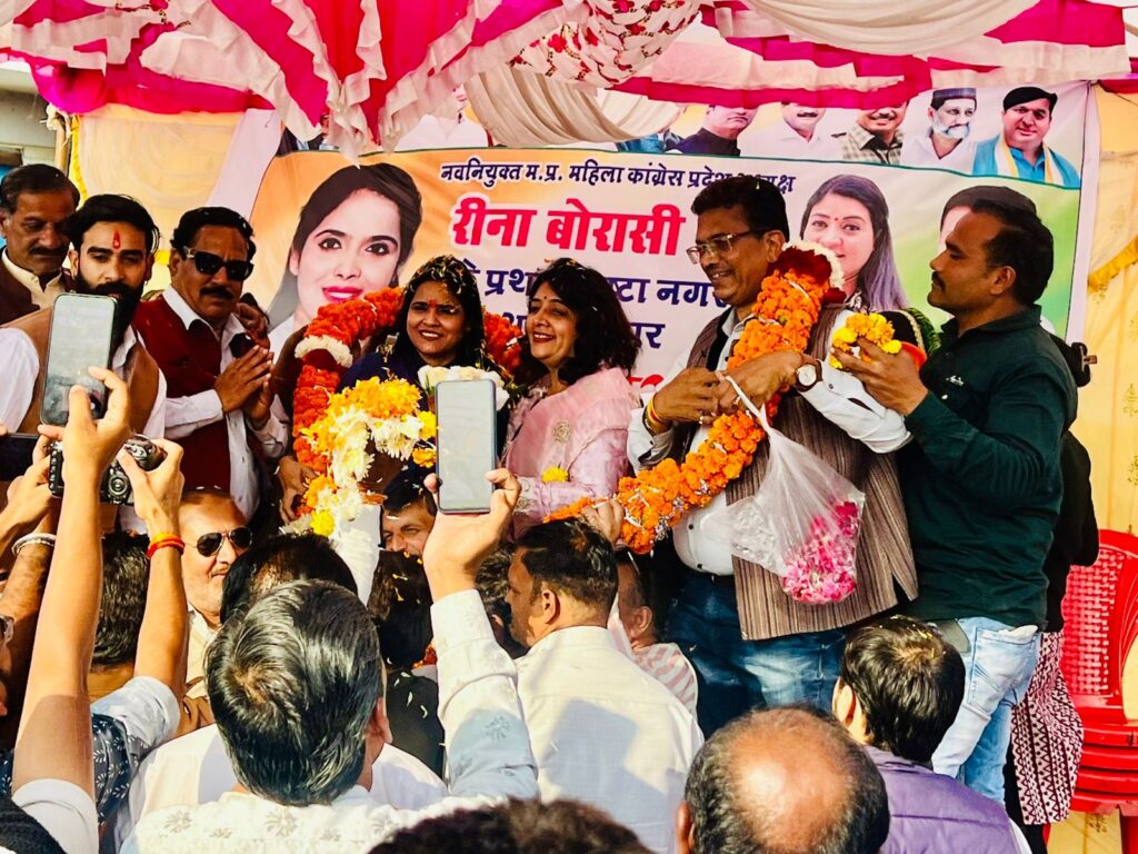 प्रदेश महिला कांग्रेस अध्यक्ष रीना बोरासी ने कहा कि मुझे राष्ट्रीय नेतृत्व ने जो जिम्मेदारी सौंपी है मैं उसका पूर्ण ईमानदारी व लगन के साथ कार्य करते हुए कांग्रेस पार्टी के प्रति नागरिकों का भरोसा बढ़ाने का काम करूंगी। आप लोगों का सहयोग अपेक्षित है। हम एक-दूसरे की सहायता से ही पार्टी को मजबूती प्रदान कर सकते है। स्वागत करने वालो मे पूर्व नपाध्यक्ष डॉ मीना सिंगी, कांग्रेस नेता कमलसिंह चौहान, हिफज्जुर्रहमान भैया मिया, सौभालसिंह मुगली, शांतिलाल मंडलोई, सौभालसिंह बगैर, विनीत सिंगी, पूर्व पार्षद इदरीस मंसूरी, सुनील सेठी, धर्मेंद्र ठाकुर चन्दर ठाकुर, भैया एमपी, सोहेल मिर्ज़ा, आत्माराम परमार, नईमद्दीन, शेख सलीम अंसारी, कलीम उद्दीन, महेन्द्र ठाकुर, विनोद ठाकुर, जगदीश चौहान, कृपाल मालवीय, लालिता बाई, लक्ष्मी बाई,
