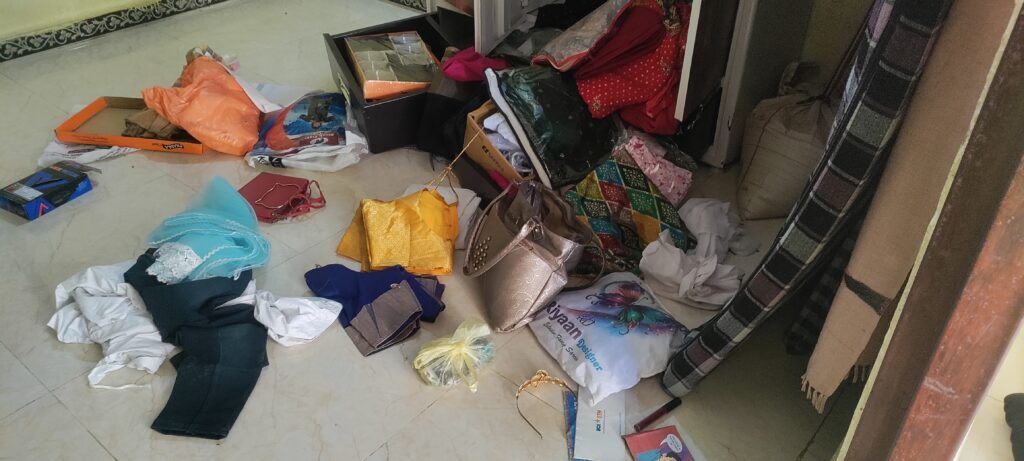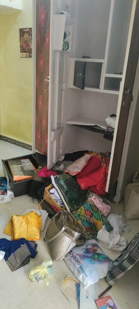 सुबह जब जगदीश अपने पूरे परिवार के साथ ग्राम खेड़ापुर से आए तब घर का ताला टूटा पाया । जब घर के अंदर जाकर देखा तो गोदरेज की अलमारी भी टूटी हुई थी तथा गोदरेज में रखे सारे कपड़े बिखरे हुए थे और जो राशि और जेवर रखे थे चोर ले गये । इसी प्रकार इसी कॉलोनी में सुदीप जैन के सुने मकान के फाटक का कुंदा तोड़ कर चोर घर मे घुसे ।