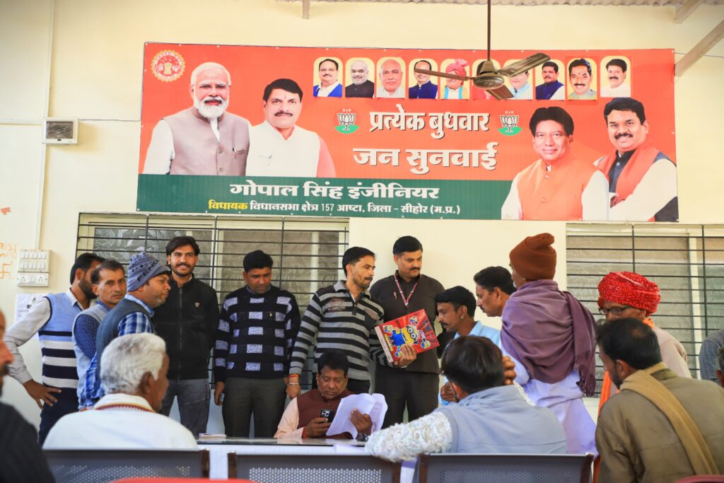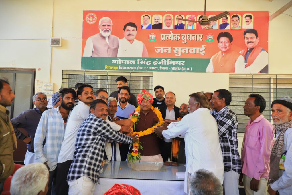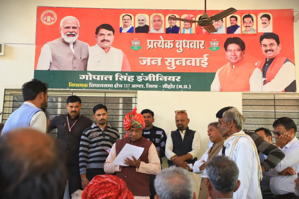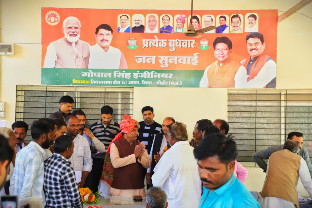 स्मरण रहे प्रत्येक बुधवार को आष्टा विधायक अपने कार्यालय में सुबाह 10 बजे से जनता की समस्याओं को सुनने,उनेह हल करवाने के लिये जनसुनवाई करते है । आज बुधवार को प्रातः 10 बजे से कार्यालय में उपस्तिथ रह कर विधायक गोपालसिंह इंजीनियर ने जनता की समस्याओं को सुना एवं उनकी समस्याओं को हल करने के सम्बंधित अधिकारियों को निर्देश दिये ।