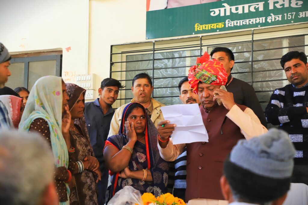 आज आये आवेदनों को तत्काल सम्बंधित विभागों के अधिकारियों से चर्चा कर ग्रामीणों की समस्याओं का समय सीमा में तत्काल निराकरण करने के निर्देश दिये । विधायक गोपालसिंह इंजीनियर ने कार्यालय आये सभी नागरिको को भरोसा दिया कि आपकी समस्याओं का जल्द निराकरण होगा,जो मांग शासन स्तर की है उनेह वे शासन तक पहुचायेंगे। मीडिया प्रभारी सुशील संचेती ने जानकारी देते हुए बताया की आज जनसुनवाई में आये ग्रामीणों ने