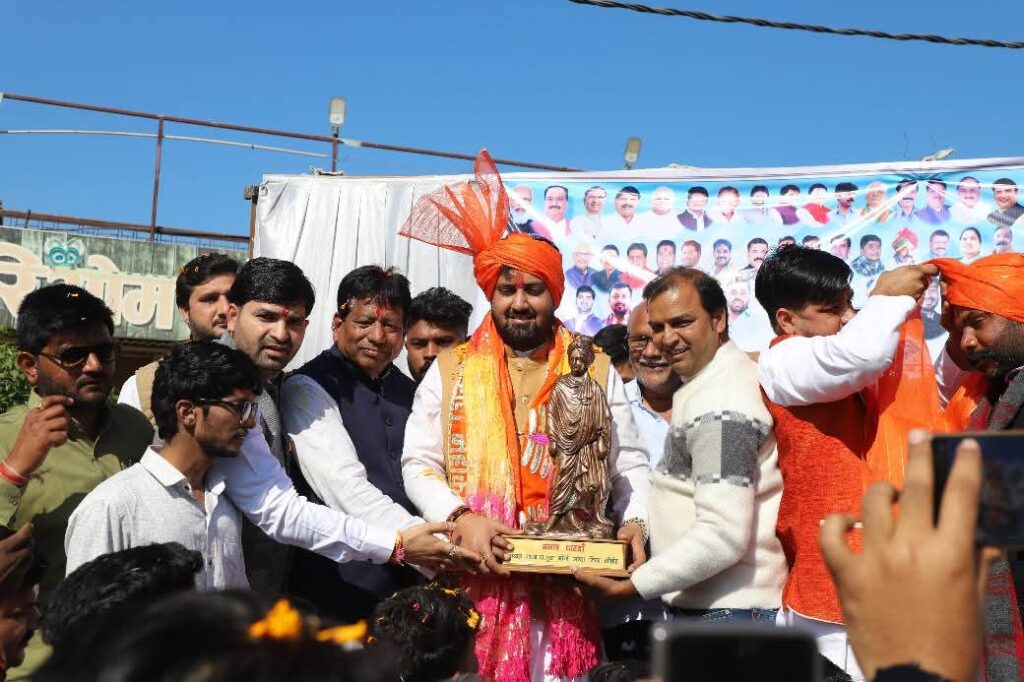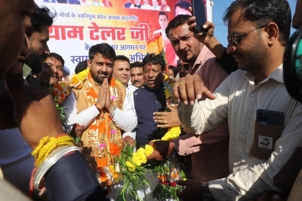 सैकड़ो की तादात में मंच पर उपस्तिथ भाजपा,भाजयुमो के कार्यकर्ताओं ने बड़ी माला पहना कर श्री श्याम टेलर,विधायक गोपालसिंह इंजीनियर का भव्य स्वागत किया । इस अवसर पर प्रदेश युवा मोर्चे के अध्यक्ष श्याम टेलर एवं विधायक गोपालसिंह इंजीनियर ने संबोधित किया ।