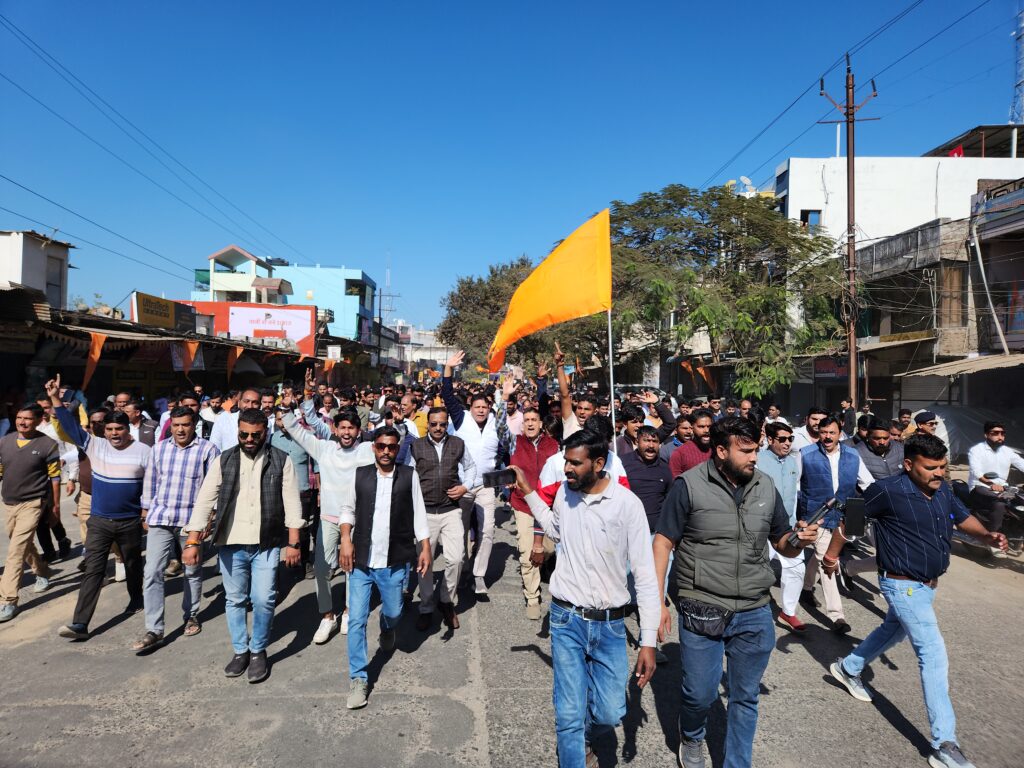 वहां एसडीएम नितिन कुमार टाले को ज्ञापन सौंपा गया। ज्ञापन देने से पूर्व तहसील परिसर में ‘बुलडोजर–बुलडोजर चलाओ’ एवं ‘जय श्रीराम’ के नारे लगाए गए। प्रदर्शनकारी काफी देर तक धरना-प्रदर्शन करते रहे।