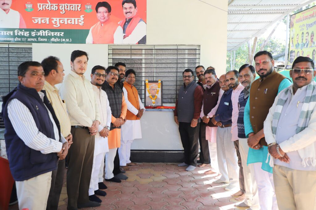 नपाध्यक्ष प्रतिनिधि रायसिंह मेवाड़ा ने अटल बिहारी वाजपेयी की जयंती पर उन्हें नमन करते हुए कहा कि आजादी के बाद प्रथम बार भाजपा की नगर सरकार नगर की जनता ने बनाई है और हम सभी उनके आदर्शो पर चलते हुए व परिषद के सहयोग से नगर विकास के कार्य निरंतर जारी है। प्रदेश की सबसे ऊंची अटलजी की प्रतिमा का लोकार्पण कर हम अपने आपको गौरवान्वित मेहसूस कर रहे है। श्री मेवाड़ा ने बताया कि पुराना इंदौर-भोपाल राजमार्ग पर 465 लाख से अधिक की राशि से शॉपिंग कॉम्पलेक्स निर्माण कार्य का भी भूमिपूजन आज संपन्न हुआ। निश्चित ही कॉपलेक्स के निर्माण से जहां निकाय की आय में वृद्धि होगी, वहीं अनेकों नगरवासियों को उसका लाभ भी प्राप्त होगा। कार्यक्रम का संचालन पूर्व नपाउपाध्यक्ष धनरूपमल जैन ने किया तथा आभार सीएमओ विनोदकुमार प्रजापति ने व्यक्त किया। इस अवसर पर मनोहर भोजवानी, नगर पुरोहित मनीष पाठक, कैलाश पांचम, दूलीचंद कुशवाह, मनोज ताम्रकार, सुरेश परमार, पवन वर्मा, निर्मला कुशवाह, रूपाली चौरसिया, लखन पाटीदार, मनोहर बैरागी, जुगलकिशोर मालवीय, प्रदीप धाड़ीवाल, सलीम ठेकेदार, कोमल जैन, धरमसिंह आर्य सहित बड़ी संख्या में भाजपा जनप्रतिनिधिगण, कार्यकर्तागण व नागरिकगण मौजूद थे।