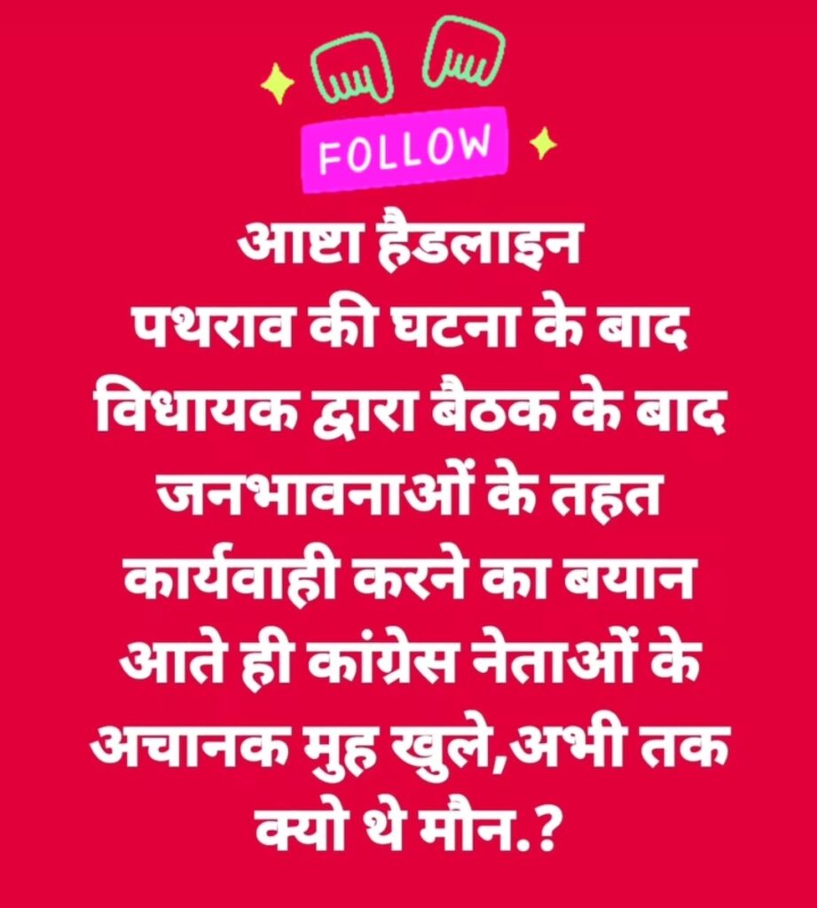 इसलिए यदि हमें हमारे परिवार को और अपने आसपास को सुरक्षित माहौल देना है तो सब जगह हमें प्रेम और स्नेह का माहौल पैदा करना पड़ेगा क्योंकि नफरत कहीं से भी शुरू होकर कहां तक पहुंचेगी यहां आपको पता भी नहीं चलेगा इसलिए मैं शहर के गणमान्य नागरिकों से समाजसेवी राजनीतिक दल के प्रतिनिधियों व्यापारी गांव छात्र-छात्राओं युवा साथियों से अपील करता हूं की नफरत का रास्ता हमारे शहर का कभी रहा नहीं है प्रेम और सद्भाव हमारे आष्टा शहर की पहचान है उसे बनाए रखना हम सब की जिम्मेदारी है कुछ तथाकथित लोग इतने संवेदनशील मामलों पर भी राजनीतिक रोटियां सकते हैं तो लिए हम सब मिलकर उनको अपने मकसद में कामयाब नहीं होने दें और हमारे शहर का वातावरण अच्छा करके सभी के लिए सुरक्षित माहौल पैदा करें प्रशासन अपना काम मुस्तादी से कर रहा है अब हम सब जिम्मेदारों के जवाबदारी बनती है कि हम अपने शहर को प्यार और सद्भाव का उसका मूल स्वरूप दिलाने में आगे आए