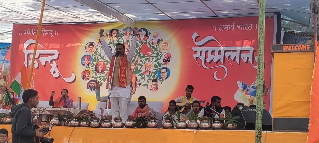 में तो कहता हूं कि शायद अगर राष्ट्रीय स्वयंसेवक संघ नहीं होता तो आज भी हम वहां मंदिर में दर्शन नहीं कर पाते,ना हीं वहा मंदिर बन पाता । इसलिए में सभी हिंदुओ से आज इस हिन्दू सम्मेलन के माध्यम से आव्हान करता हु,कि चाहे किसी स्थिति में साथ देना पड़े, मर जाना पड़े,तो धर्म का ही साथ दीजिए । कभी भी जयचंद बन कर के धोखा मत देना। आज बंगलादेश में हिंदुओं की क्या स्तिथि है,इसको जरा देखो,समझो ओर जागो । हिन्दू हम सब एक है, एक रहिए । बंगलादेश में जिस युवक को जिन्दा जलाया वो इस लिये की वो हिन्दू था ।
