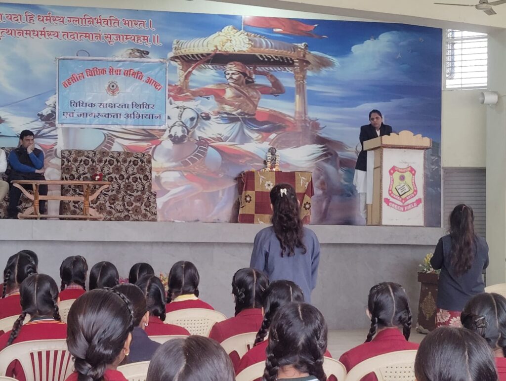 प्रधान जिला एवं सत्र न्यायाधीश/अध्यक्ष जिला विधिक सेवा प्राधिकरण, सीहोर के निर्देशानुसार एवं श्री विजय डांगी, जिला न्यायाधीश/अध्यक्ष तहसील विधिक सेवा समिति, आष्टा जिला सीहोर में के मार्गदर्शन में श्रीमती ऋचा जैन, न्यायिक मजिस्ट्रेट प्रथम श्रेणी, आष्टा जिला सीहोर के द्वारा 24 जनवरी 2025 को राष्ट्रीय बालिका दिवस के उपलक्ष्य में ग्रीन फील्ड स्कूल, आष्टा में विधिक साक्षरता शिविर का आयोजन किया गया। जिसमें श्रीमती जैन ने कहा कि राष्ट्रीय बालिका दिवस हमें याद दिलाता है कि एक समाज तब तक विकसित नहीं हो सकता जब तक उसकी महिलाएं सशक्त न हों।