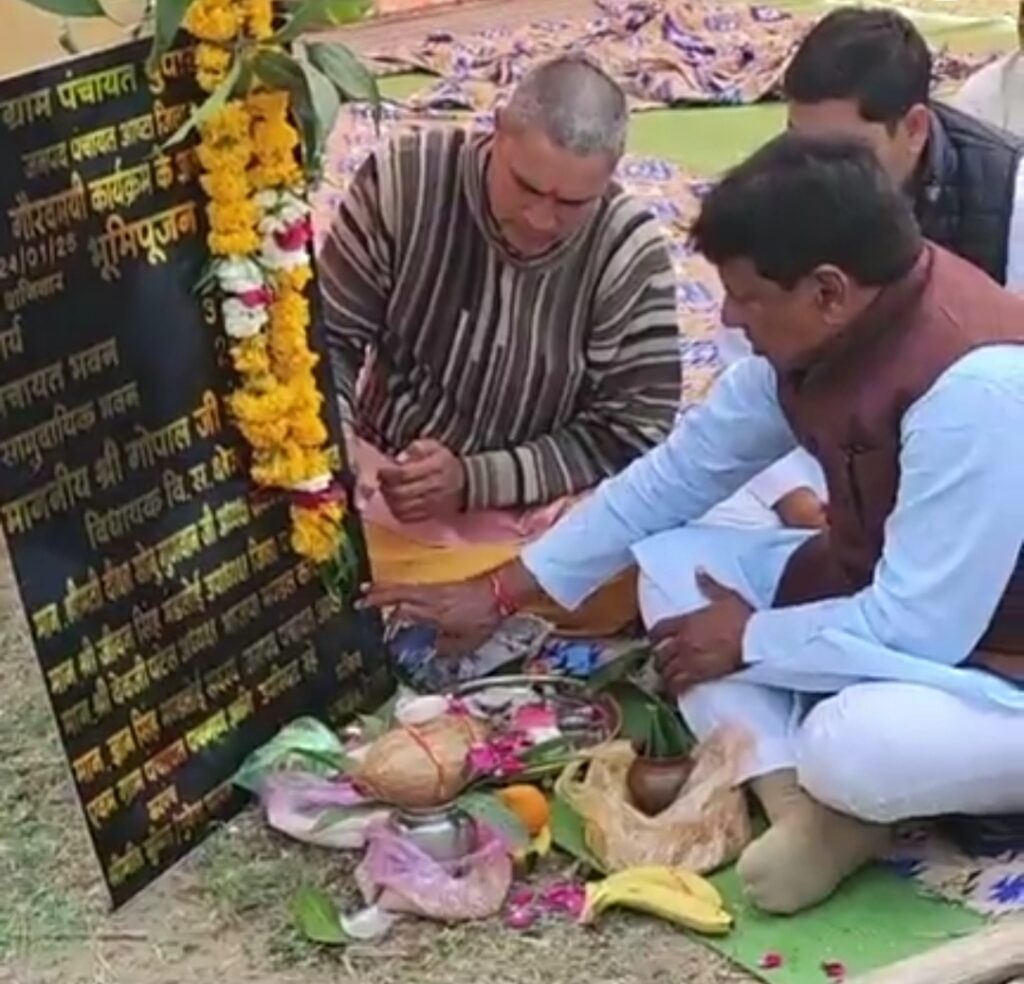 आज विधानसभा क्षेत्र के ग्राम चुपाड़िया में मांगलिक भवन का भूमिपूजन किया। यह भवन बनने के बाद ग्रामवासियों के लिए सामाजिक, सांस्कृतिक एवं धार्मिक आयोजनों को करने के लिये बड़ी सुविधा प्रदान करेगा । इससे टेंट लगाने के खर्चे में ग्रामीणों को बचत होगी । विधायक ने इस अवसर पर केंद्र और राज्य सरकार की जनहितकारी योजनाओं से सभी को अवगत कराया ।