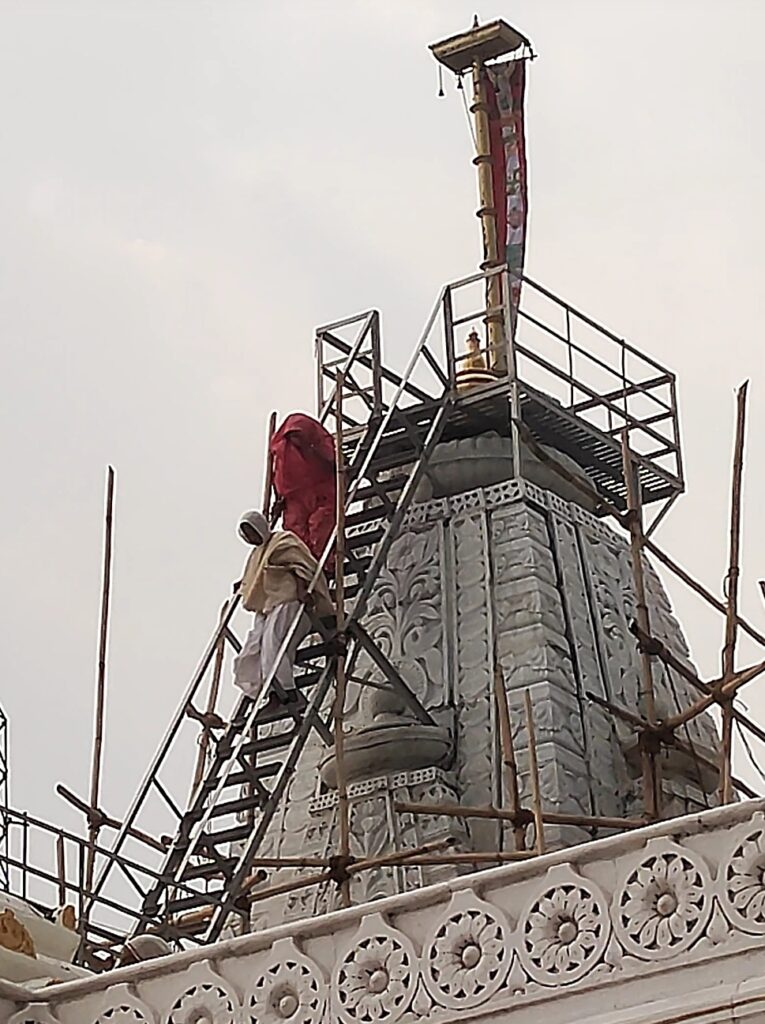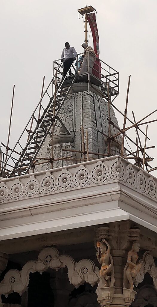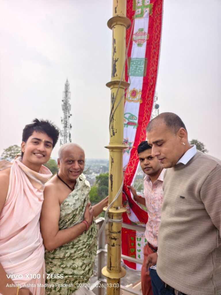 आचार्य हर्ष तिलक सूरीश्वर जी महाराज के पावन सानिध्य में श्री नेमिनाथ आष्टा तीर्थ मंदिर के शिखर पर विधिवत ध्वजारोहण किया गया।