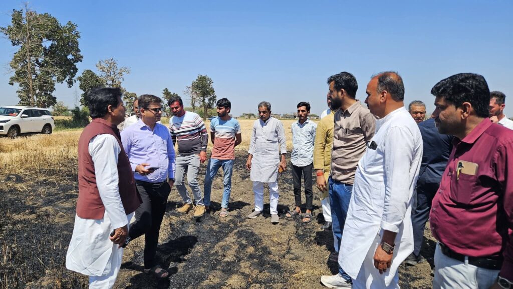 “गेहूं के खेत में लगी आग,फसल जल कर हुई नष्ट,धरमपुरी से लौटते वक्त विधायक ने खेत पर पहुच कर किया निरीक्षण, राहत राशि के दिये निर्देश