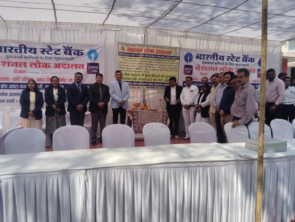 न्यायालय परिसर आष्टा में राज्य विधिक सेवा प्राधिकरण जबलपुर के आदेशानुसार आज 14 मार्च 2026 को नेशनल लोक अदालत का माॅ सरस्वती की प्रतिमा के समक्ष तहसील विधिक सेवा समिति, आष्टा की अध्यक्ष/जिला न्यायाधीश,श्री विजय डांगी, श्री महेश कुमार चौहान, श्री नदीम जावेद खान, श्रीमती ऋचा शर्मा, श्रीमती ऋचा जैन एवं सभी अधिवक्तागणो की उपस्तिथि में शुभारम्भ किया गया । लोक अदालत में लंबित प्रकरणों में न्यायाधीश श्री महेश कुमार चौहान के द्वारा कुल विद्युत प्री लिटिगेशन के 607 प्रकरण निराकरण के लिए रखे गए थे। जिसमें से राजीनामा अनुसार कुल 607 प्रकरणों का निराकरण हुआ।