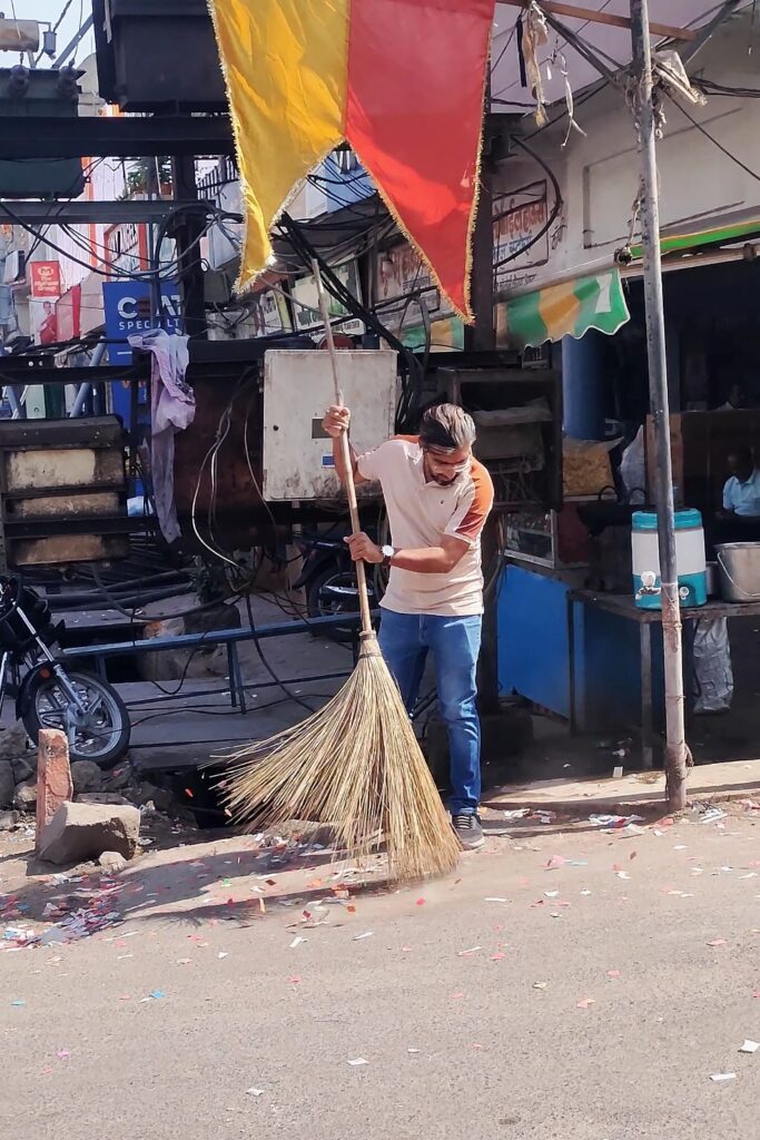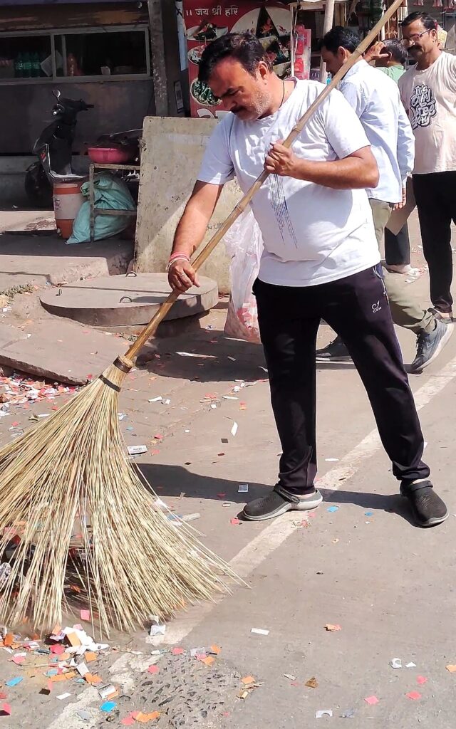 इसको लेकर आज नगर पालिका अध्यक्ष प्रतिनिधि रायसिंह मेवाडा, सीएमओ विनोद प्रजापति एवं पार्षद रवि शर्मा,तेजसिंह राठौर ने स्वयं झाड़ू उठाई और कॉलोनी चौराहे पर सफाई की । सफाई कार्य मे जुटे नगर पालिका अध्यक्ष प्रतिनिधि रायसिंह मेवाडा ने मौके पर पहुचे इस प्रतिनिधि को बताया कि नगर पालिका के सफाई कर्मी जिन मांगों को