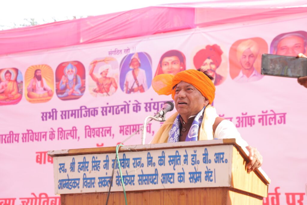 पूर्व की सरकार जिसने की देश के आजाद होने के 50 से 60 साल तक भारत पर राज किया लेकिन उन्होंने बाबा साहब को भारत रत्न नहीं दिया जब 1999 में एनडीए के समर्थन से चल रही सरकार केंद्र में थी तब उस सरकार ने बाबा साहब को भारत रत्न की उपाधि से विभूषित किया । वही बाबा साहब के पंच तीर्थो के विकास भी हमारी सरकारों ने किया । आज सब बातें बहुत करते है,जबकि काम करना चाहिए । बाबा साहब ने कहा है शिक्षित बनो,संगठित रहो और संघर्ष करो । आज चिंता इस बात की करना होगी कि हमारी संतान कैसे अच्छी से अच्छी शिक्षा प्राप्त करे,कैसे अच्छा जीवन जिये ।